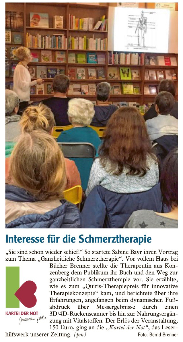 Über unser Konzept der „ganzheitlichen Schmerztherapie“ von Sabine Bayr ist ein gleichnamiges Buch erschienen. Ein unterhaltsamer & informativer Ratgeber, der jedem Patienten und Therapeuten nützlich zur Seite steht.